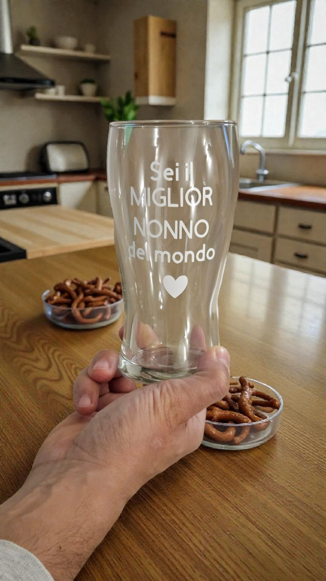 Grazie alla personalizzazione incisa, puoi scegliere una dedica speciale e unica, trasformando questo bicchiere in un messaggio che resta nel tempo: una frase d’amore, una data indimenticabile, un nome o un motto che sa di complicità.
