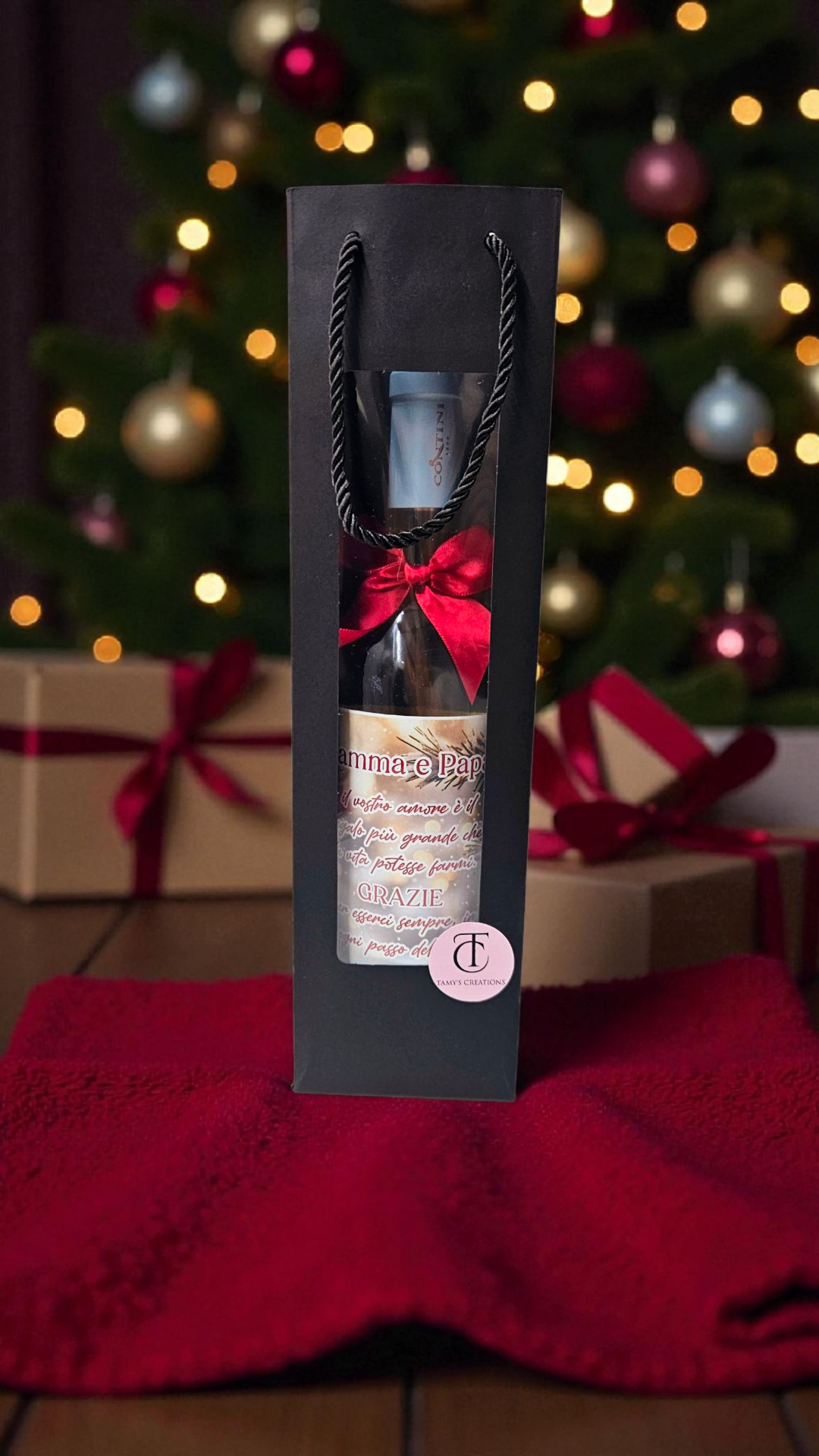 L’etichetta è creata artigianalmente con cura e attenzione ai dettagli, per offrire un regalo davvero speciale e originale. Disponibile in pronta consegna, la bottiglia arriva già inserita in un’elegante busta regalo, pronta per rendere il vostro Natale ancora più indimenticabile.