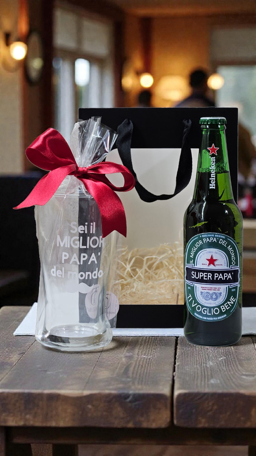 La box include anche un bicchiere per la birra in vetro personalizzato da 50 cl