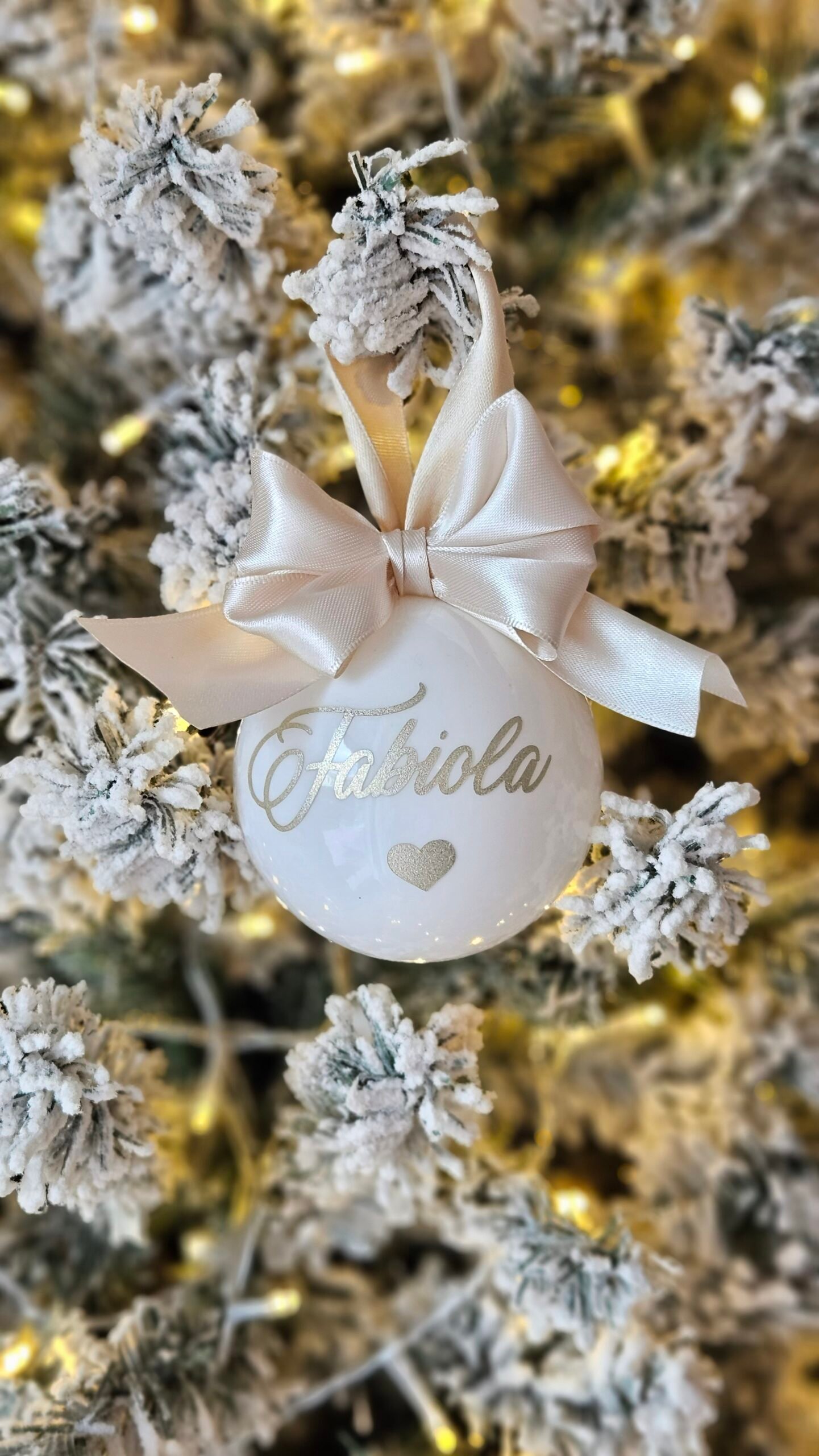 Elegante palla impreziosita da un bellissimo fiocco fatto a mano in morbido raso. Pensata per donare un tocco unico ed elegante al tuo albero di Natale, è l’idea perfetta per decorare la tua casa, il tuo locale o salone di bellezza.