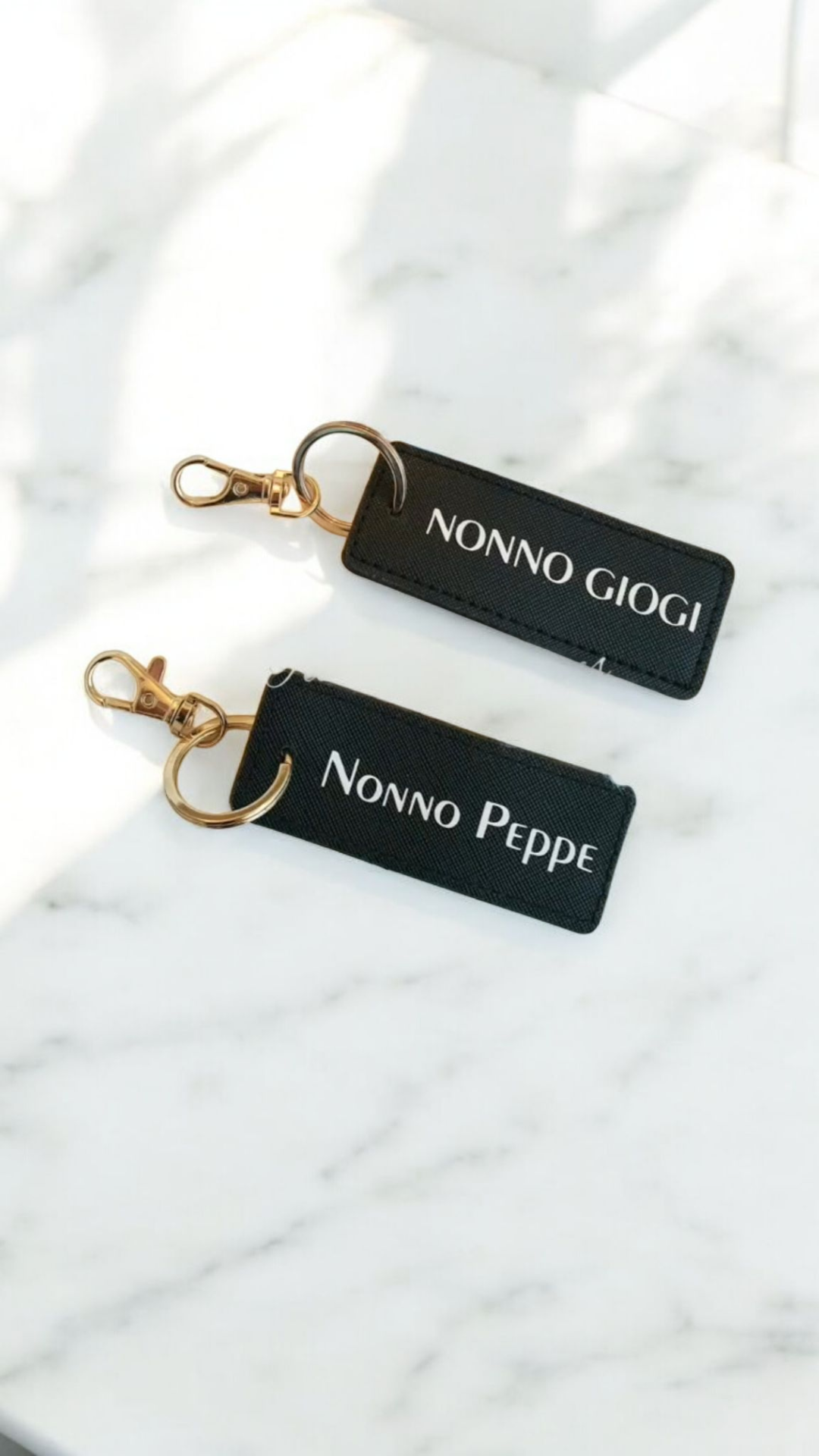 Elegante portachiavi in ecopelle Saffiano di alta qualità, perfetto come idea regalo per ogni occasione.