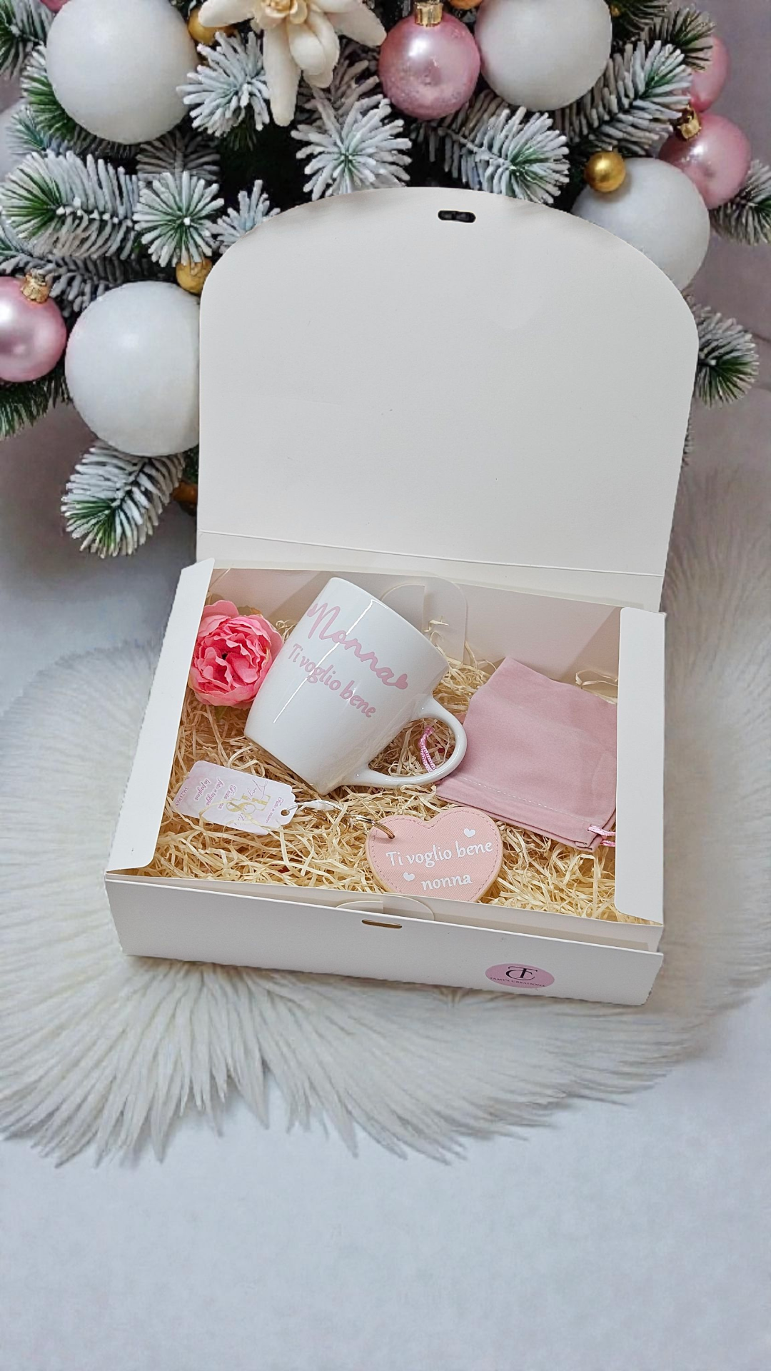 Kit in pronta consegna, realizzato interamente a mano e composto da una bellissima tazza dedicata alla Nonna e un portachiavi in ecopelle Saffiano di alta qualità, elegante e resistente.