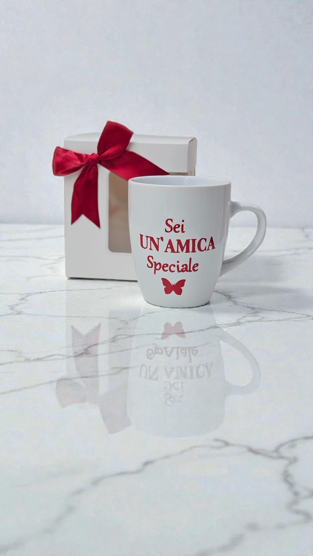 Rendi ogni momento unico con questa tazza personalizzata, pensata per custodire la tua bevanda preferita con stile. Ogni tazza può essere arricchita con una frase speciale o una dedica personale, trasformando un semplice gesto quotidiano in un piccolo rituale di gioia e affetto.